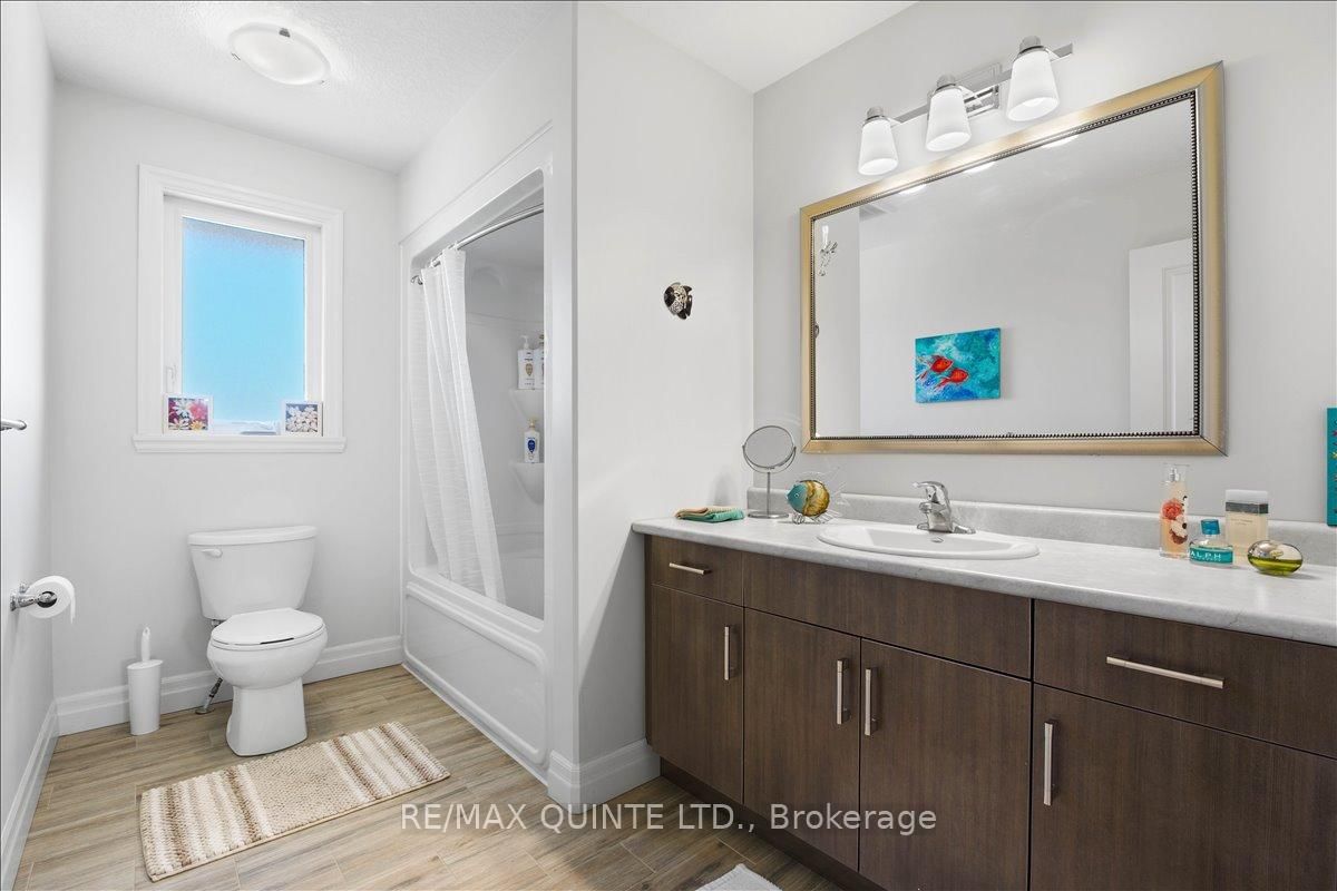 Spacious family home in Belleville's east end! Modern Comfort, Exceptional Space, and Prime Location. The 2-Storey on 6 Granby Court has 3 bedrooms, 4 bathrooms, and is located on a 144 x 44 ft loton < .50 acres in the community of Belleville Ward . With over 2,800 sq. ft of living space, this 7 year old home is better than new with thoughtful additions adding to it's value. Enjoy the convenience of an established, family-friendly neighbourhood with all the amenities Belleville has to offer just a short distance away. You will love it's close proximity to Hwy 401, Via Rail Train Station, Sports Centre, shopping and transit. This quiet cul-de-sac is tucked away off the main road creating a safe and peaceful location. The large, partially fenced backyard provides privacy and space for children or pets or perhaps a pool! An irrigation system ensures your lawn and gardens stay healthy with minimal effort. Landscaping and gardens are already established and add to the outdoor charm. The main floor of the home has a practical den at the main entrance, making a convenient work-from-home space, separate from the main living areas. The kitchen and dining rooms are combined with the cozy living room which features a stone gas fireplace. The kitchen is a chefs dream! Large peninsula with seating, gas stove and granite countertops are a few of the standout features. A walk out to a 2-tiered deck welcomes you and a retractable awning provides shade during warm summer days. On the 2nd level, the primary bedroom features an ensuite bathroom with walk-in glass shower and walk-in closet. 2 more bedrooms and another full bath provide space and privacy for family. More functional space is added with another 935 sq ft in the lower level, including another bedroom, full bathroom and family room with lovely large windows overlooking the back yard. Residents benefit from easy access to the city centre, with major roads and public transit options just minutes away. This makes commuting to work, school, or entertainment effortless, while still enjoying the comfort and quiet of a residential community.