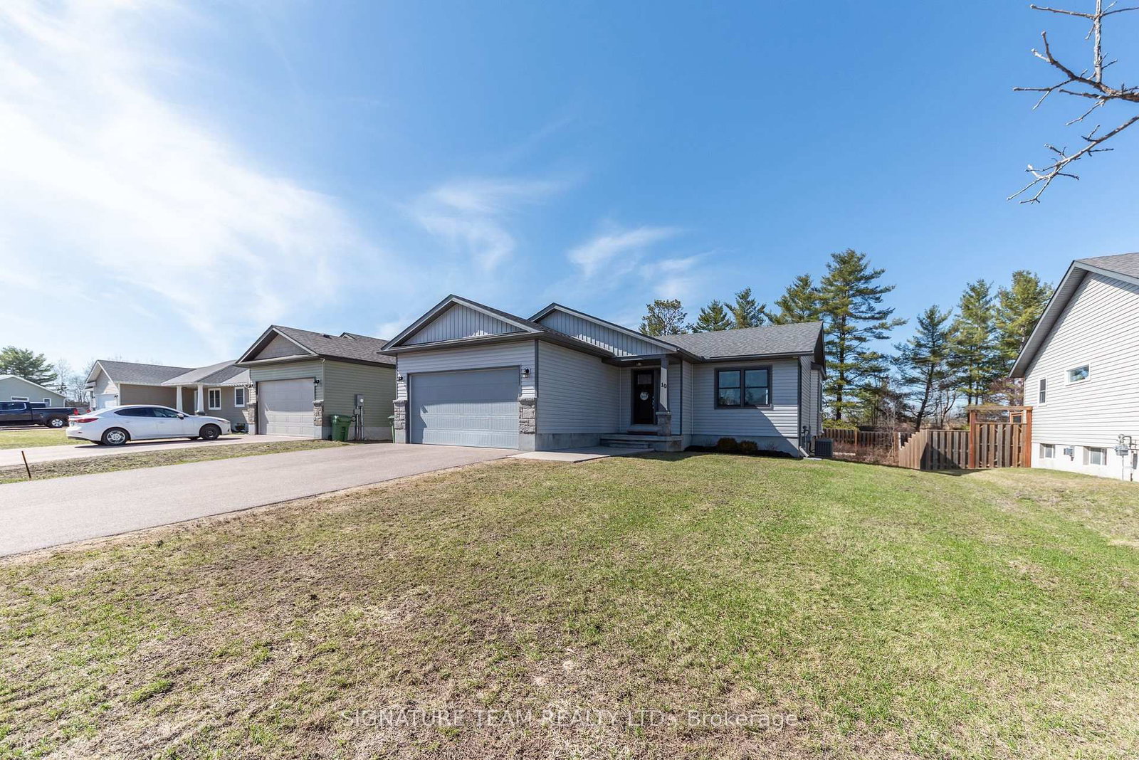 Pristine bungalow built in 2019, located in a desirable neighbourhood. The Bungalow on 10 Terrance Drive has 2 bedrooms, 3 bathrooms, and is located on a 37.66 x 18 ft lot in the community of Petawawa . Main level features an open. concept living room, dining room and kitchen. Kitchen features stainless steel appliances and Island with electrical. Dining with patio doors to the deck overlooking the backyard. 4 pc bathroom, huge primary with 3 pc ensuite and large walk in closet. 2nd bedroom, plus main floor laundry. Access to the attached garage that has been drywalled and fully insulated with opener. Downstairs is fully finished with L shaped family room, plus an office space. Separate storage area perfect for storage bins or kit. A 3rd huge bedroom, plus a utility room with extra storage. This home is move in ready and includes lawn service prepaid until October 31st, 2026
