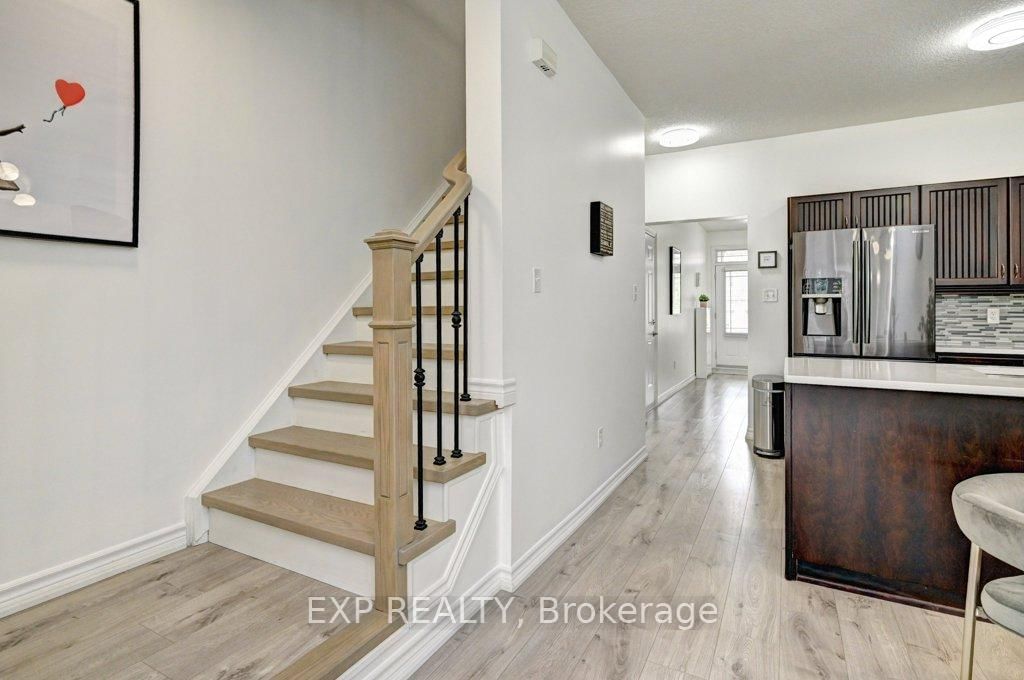 This beautiful open bright family home offers spacious layout throughout. The 2-Storey on 795 Laurelwood Drive has 3 bedrooms, 4 bathrooms, and is located in the community of . The Master bedroom is on the main floor with a full ensuite, ideal for older home owners with a separation from other bedrooms. Situated in a quiet cul-de-sac with privacy surrounded by mature trees and landscaping. This unit has lots of natural lighting and the complex has impressive curb appeal as a whole. The main floor starts with a cozy office or reading nook with a very large powderoom. The laundry/pantry is spacious behind the kitchen. The kitchen has stainless steel appliances, a quartz counter top is a deep and large single sink. The floorings are a couple of years old on all three floors and the unit has been painted within the last year. The dining area flows from the kitchen with high ceilings with a 2nd floor overlook. The second floor common area can be converted to a 4th bedroom with a existing closet. Large sliding glass doors lead to the deck, cozy for reading or entertaining during summer evenings. The basement is fully finished with a full bathroom and large open areas which can be separated into bedrooms. Few minutes walking distance to highly rated Abraham Erb public school and Laurel Heights Secondary school, Food basics and Shoppers drug mart. Within 7 min drive to University of Waterloo, Costco, YMCA, and The Boardwalk. Many all season walking trails around the neighbourhood.. The complex is a close community with small number of units. Very safe and welcoming... Equally good for anyone downsizing and starting a new family.