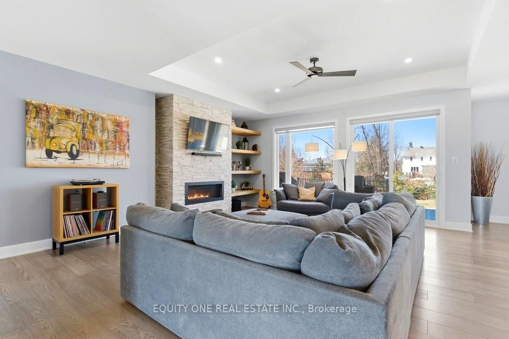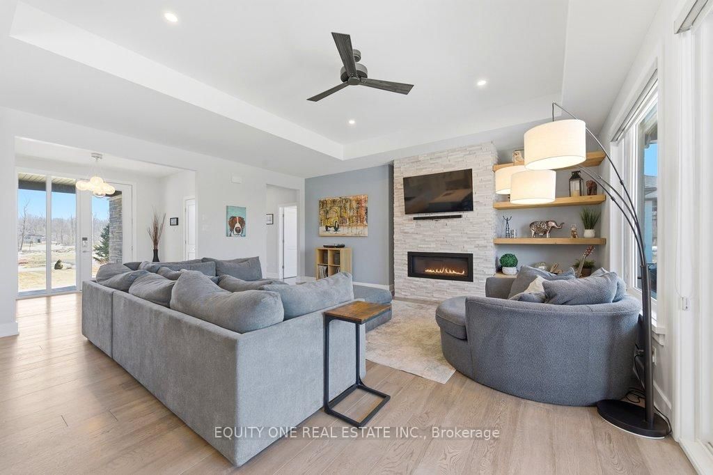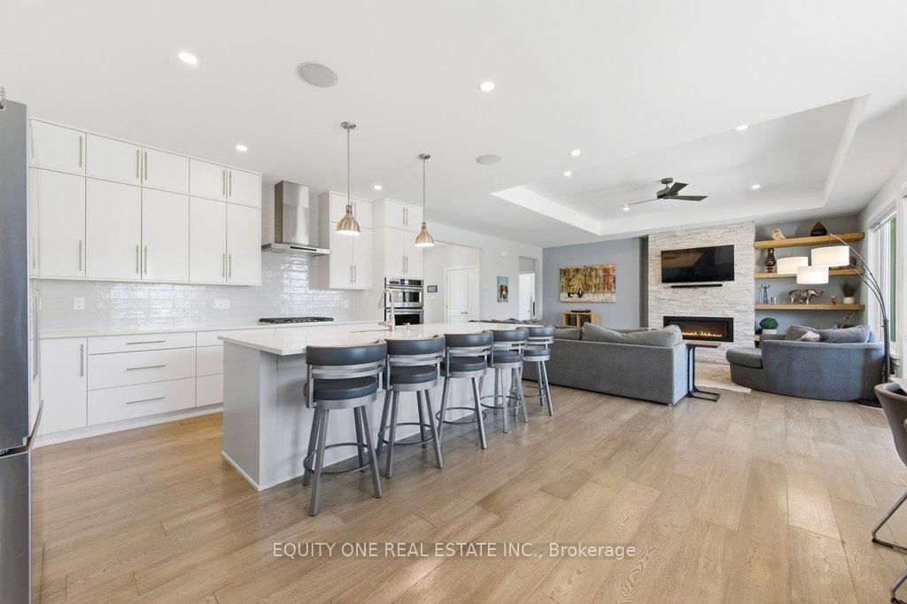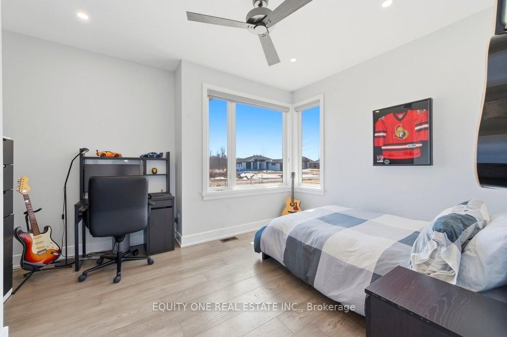 Welcome to this spectacular 4+1 bedroom, 4 bathroom bungalow in the highly sought-after Lakewood Trails community of Greely where modern luxury meets peaceful estate living. The Bungalow on 415 Shoreway Drive has 4 bedrooms, 4 bathrooms, and is located on a 233.85 x 99.8 ft lot in the community of Greely . Built by Mackie Homes, this beautifully designed residence offers exceptional craftsmanship, thoughtful upgrades, and an ideal layout. The main level features a bright, open-concept design anchored by a stunning great room with a cozy natural gas fireplace, seamlessly flowing into a designer kitchen with quality cabinetry, stone countertops, and generous prep space ~ perfect for hosting family and friends. Designed for privacy, the primary suite is set on one side of the home, offering a peaceful retreat complete with his & hers walk-in closets and a luxurious ensuite featuring a freestanding soaker tub, glass shower, and heated floors. On the opposite side of the home, you'll find three additional well-sized bedrooms and a full bathroom-ideal for family living or guests. A spacious mudroom with built-in cabinetry provides excellent everyday storage and organization, while the main floor laundry room adds convenience and functionality.The fully finished lower level expands your living space with a large recreation area, dedicated exercise space, additional bedroom, and full bathroom. A separate theatre room with a second gas fireplace creates the perfect setting for movie nights and entertaining ~ ideal for multi-generational living or a private retreat. Car enthusiasts and families alike will appreciate the heated oversized 3-car garage, complete with built-in shelving for storage and direct access to the basement ~ an incredibly practical feature. Storage is abundant throughout the home, making it easy to stay organized and clutter-free. Outside, enjoy a beautifully landscaped backyard, rear patio, and upgraded exterior featuring stone and brick finishes, all set within one of Greely's most desirable communities featuring a community rec centre, pool and gym. Association fee of $400/year.