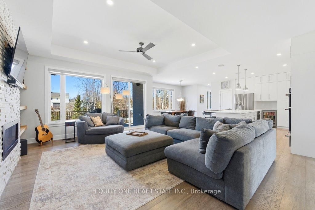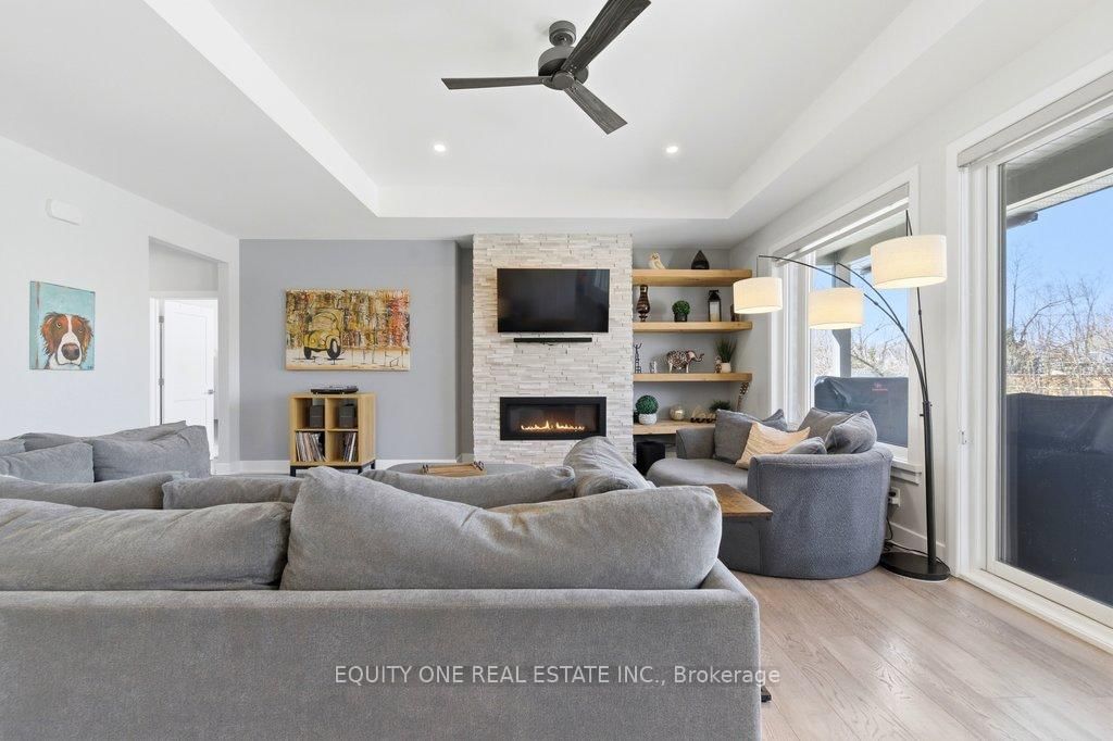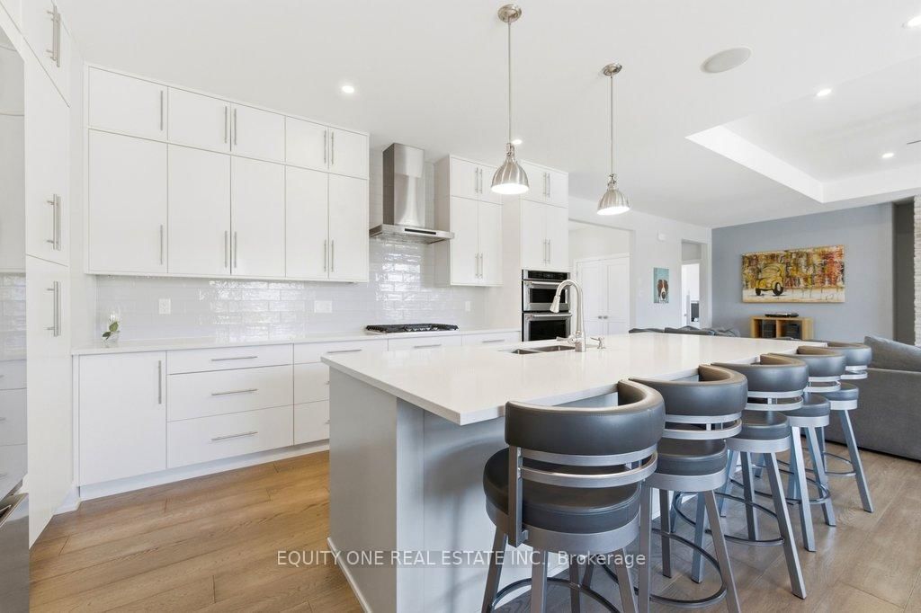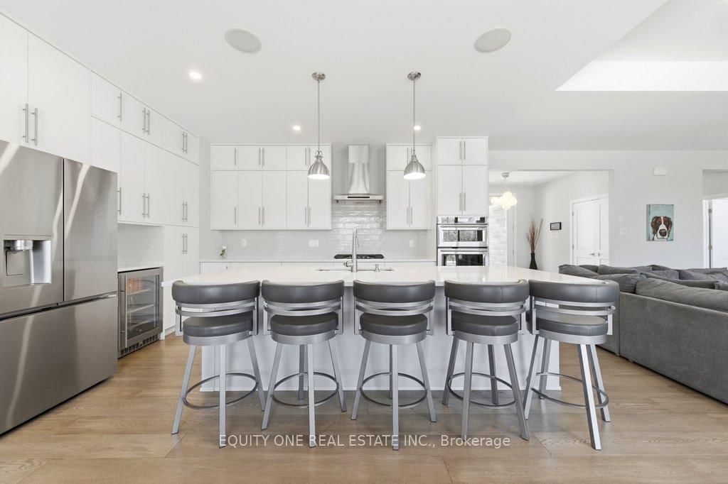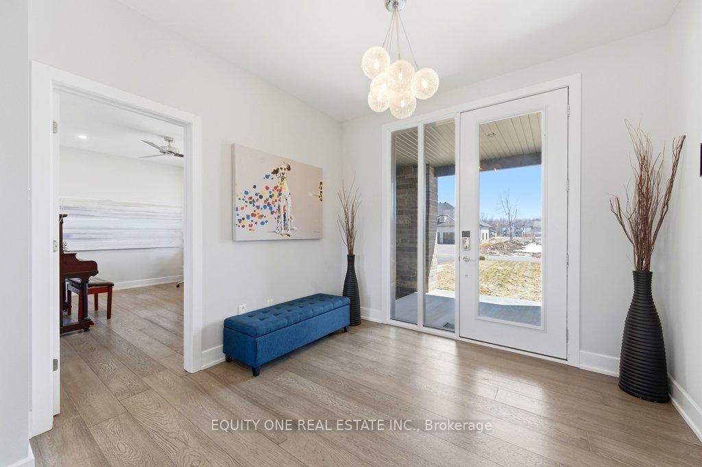 Welcome to this spectacular 4+1 bedroom, 4 bathroom bungalow in the highly sought-after Lakewood Trails community of Greely where modern luxury meets peaceful estate living. The Bungalow on 415 Shoreway Drive has 4 bedrooms, 4 bathrooms, and is located on a 233.85 x 99.8 ft lot in the community of Greely . Built by Mackie Homes, this beautifully designed residence offers exceptional craftsmanship, thoughtful upgrades, and an ideal layout. The main level features a bright, open-concept design anchored by a stunning great room with a cozy natural gas fireplace, seamlessly flowing into a designer kitchen with quality cabinetry, stone countertops, and generous prep space ~ perfect for hosting family and friends. Designed for privacy, the primary suite is set on one side of the home, offering a peaceful retreat complete with his & hers walk-in closets and a luxurious ensuite featuring a freestanding soaker tub, glass shower, and heated floors. On the opposite side of the home, you'll find three additional well-sized bedrooms and a full bathroom-ideal for family living or guests. A spacious mudroom with built-in cabinetry provides excellent everyday storage and organization, while the main floor laundry room adds convenience and functionality.The fully finished lower level expands your living space with a large recreation area, dedicated exercise space, additional bedroom, and full bathroom. A separate theatre room with a second gas fireplace creates the perfect setting for movie nights and entertaining ~ ideal for multi-generational living or a private retreat. Car enthusiasts and families alike will appreciate the heated oversized 3-car garage, complete with built-in shelving for storage and direct access to the basement ~ an incredibly practical feature. Storage is abundant throughout the home, making it easy to stay organized and clutter-free. Outside, enjoy a beautifully landscaped backyard, rear patio, and upgraded exterior featuring stone and brick finishes, all set within one of Greely's most desirable communities featuring a community rec centre, pool and gym. Association fee of $400/year.