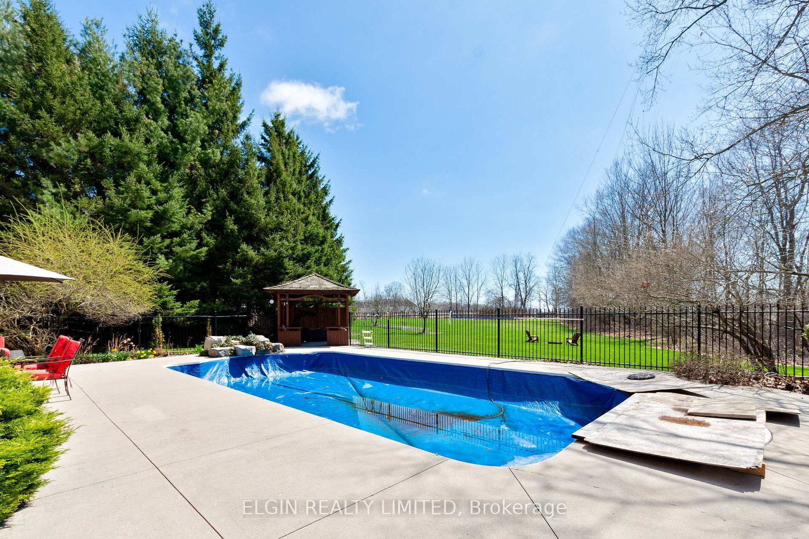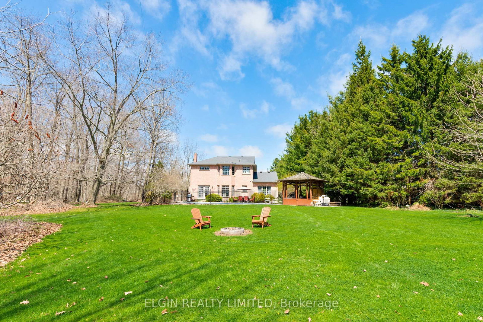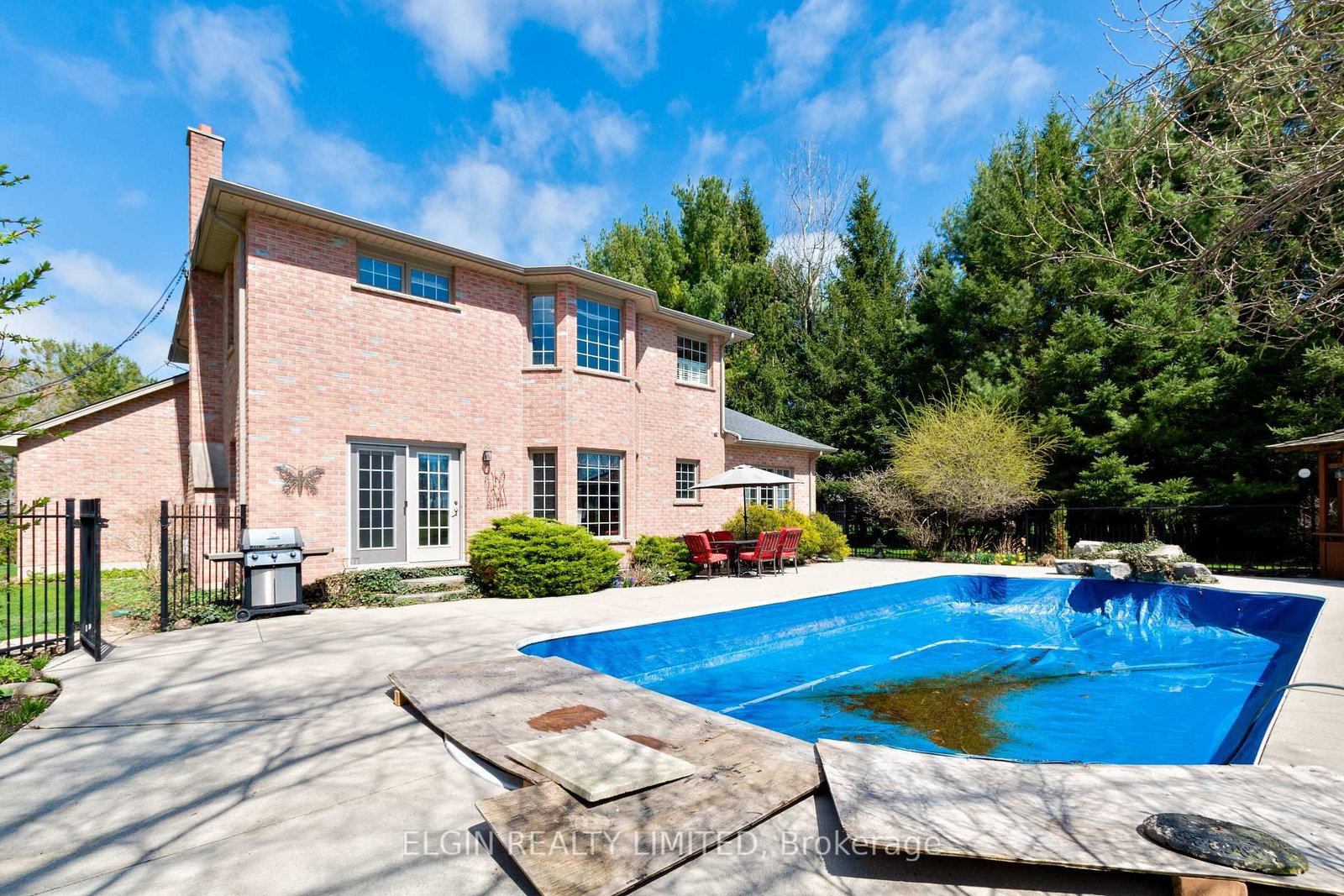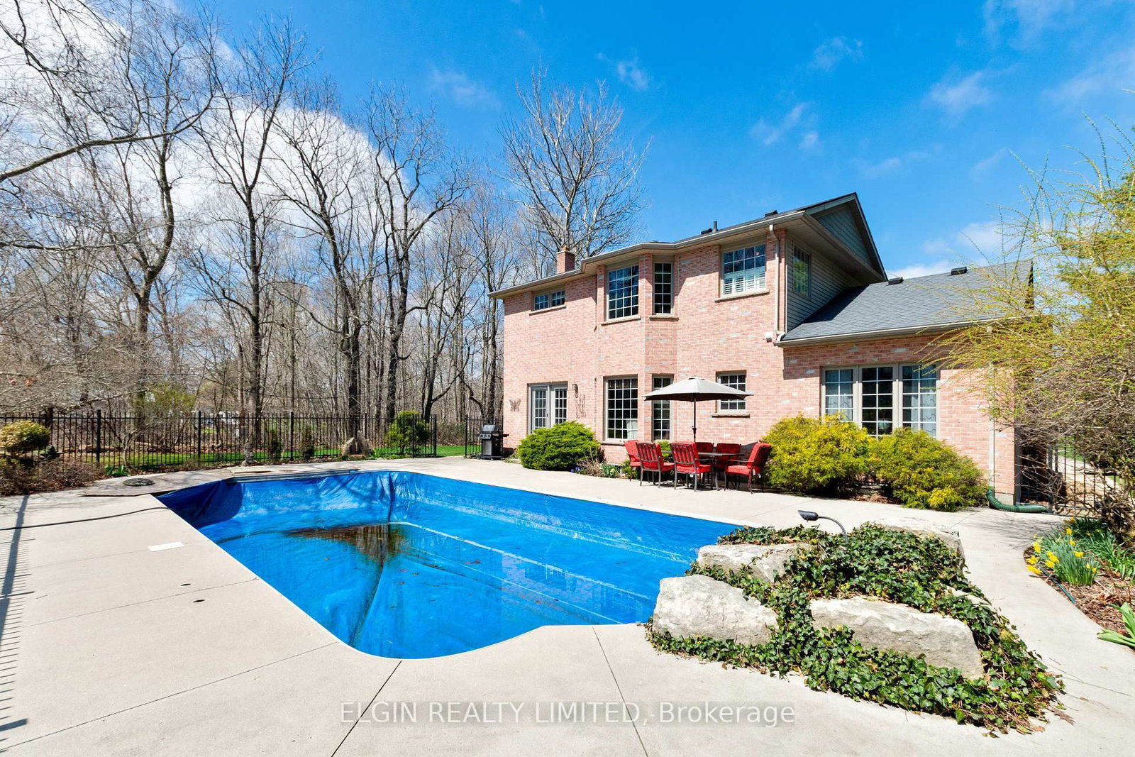 This executive home is ready for a new family to enjoy. The 2-Storey on 46485 Sparta Line has 3 bedrooms, 3 bathrooms, and is located on a 666.76 x 251.44 ft lot in the community of Sparta . Situated on over 4 acres, this incredible property offers the perfect blend of luxury, privacy, and outdoor living. Featuring 3 bedrooms and 2.5 baths, this home is designed for both comfort and entertaining.An impressive foyer with cathedral ceilings and grand staircase welcomes you inside. The main floor offers a formal living room with gas fireplace, dining room for hosting, and an eat-in kitchen that opens to the family room featuring a cozy wood-burning fireplace - perfect for everyday living.Upstairs, you'll find three bedrooms and a full family bath. The expansive primary suite is a true retreat, complete with a spacious walk-in closet and luxurious 5-piece ensuite.The basement is unfinished and ready for your vision, with rough in for a bath and a convenient access to the double garage. Invisible fencing is already in place for your furbaby.Step outside to your own private retreat with a saltwater pool complete with waterfall feature, putting green, tranquil pond, and a picturesque stream winding through the property. With parking for 8+ vehicles, a double garage, and a quiet street location, this rare offering truly has it all.