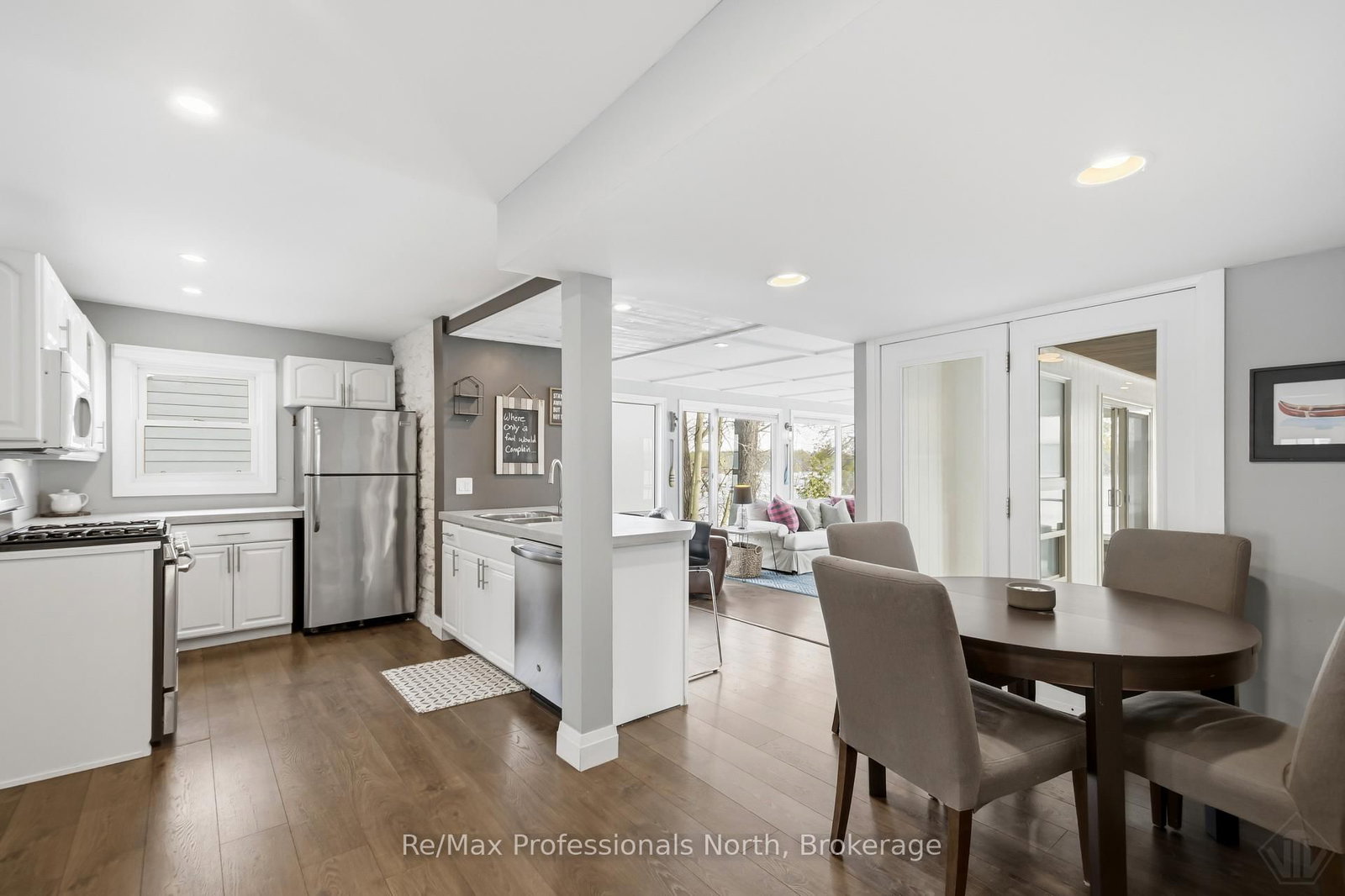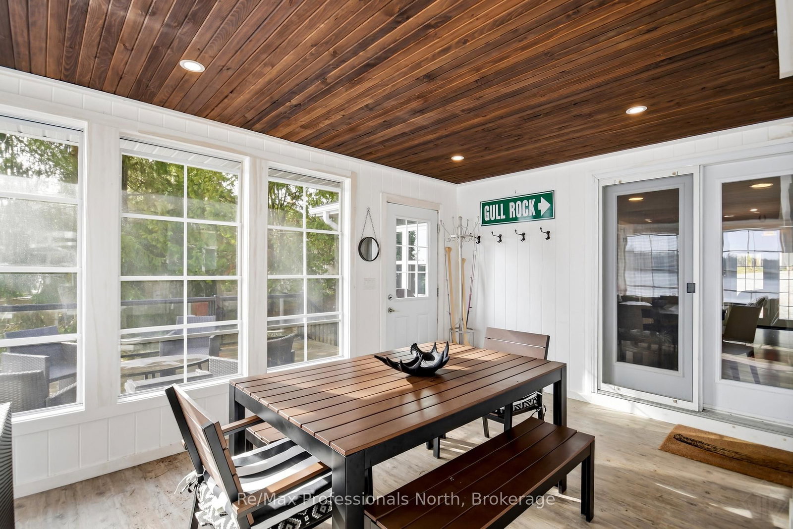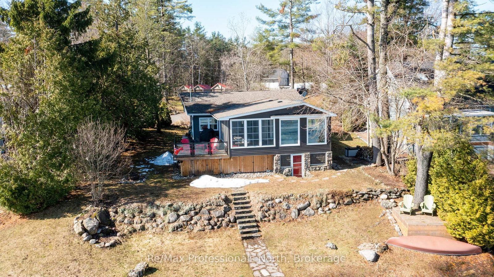Welcome to this beautifully updated turnkey 1,164 sq ft bungalow cottage on Gull Lake, offering 75 ft of clean, sandy north-east shoreline and stunning lake views. The Bungalow on 2-550 Sixth Street has 3 bedrooms, 1 bathrooms, and is located on .50-1.99 acres in the community of Muskoka (S) . Perfectly positioned to capture the morning sun, this 3-bedroom, 1-bathroom cottage blends classic Muskoka charm with modern updates. Inside, the bright open-concept kitchen, dining, and living room feature large windows that fill the space with natural light and showcase picturesque lake views. The kitchen offers ample cabinet space and island seating, perfect for entertaining or casual family meals. Just off the main living area is the inviting Muskoka room with wood ceilings and large windows, providing a beautiful place to relax while enjoying peaceful waterfront scenery. The cottage layout includes two bedrooms at the back and a primary bedroom at the front featuring views of Gull Lake, along with a 3-piece bathroom. A newly renovated laundry room features extensive built-in cabinetry and functions well as a walk-in pantry and storage area. Step outside to a large deck with glass railings off the Muskoka room, leading to new steps down to the water and a spacious dock with pergola, ideal for swimming, boating, and relaxing at the lake. The property offers a long driveway with plenty of parking and a spacious shed. A charming bunkie with wood walls and ceilings, power, and a bedroom loft provides great extra sleeping space, and a cool hang out spot for kids and overflow guests. Nearby the sports court provides added entertainment and activity. A strategically positioned outhouse with a composting toilet offers convenience for bathroom breaks. Serviced by municipal water, natural gas, and septic, the cottage offers year-round convenience. Located less than 3 minutes to town and amenities, and close to a beautiful park with tennis courts, baseball diamond, playground, beach, and volleyball court, this property offers the perfect balance of peaceful waterfront living and convenience.