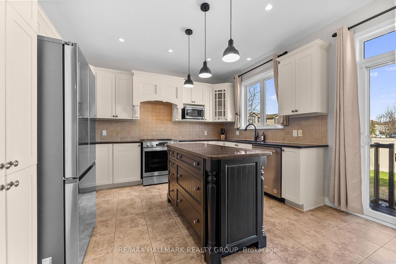 • Kitchen: Tile Floor, Centre Island, Granite Counter