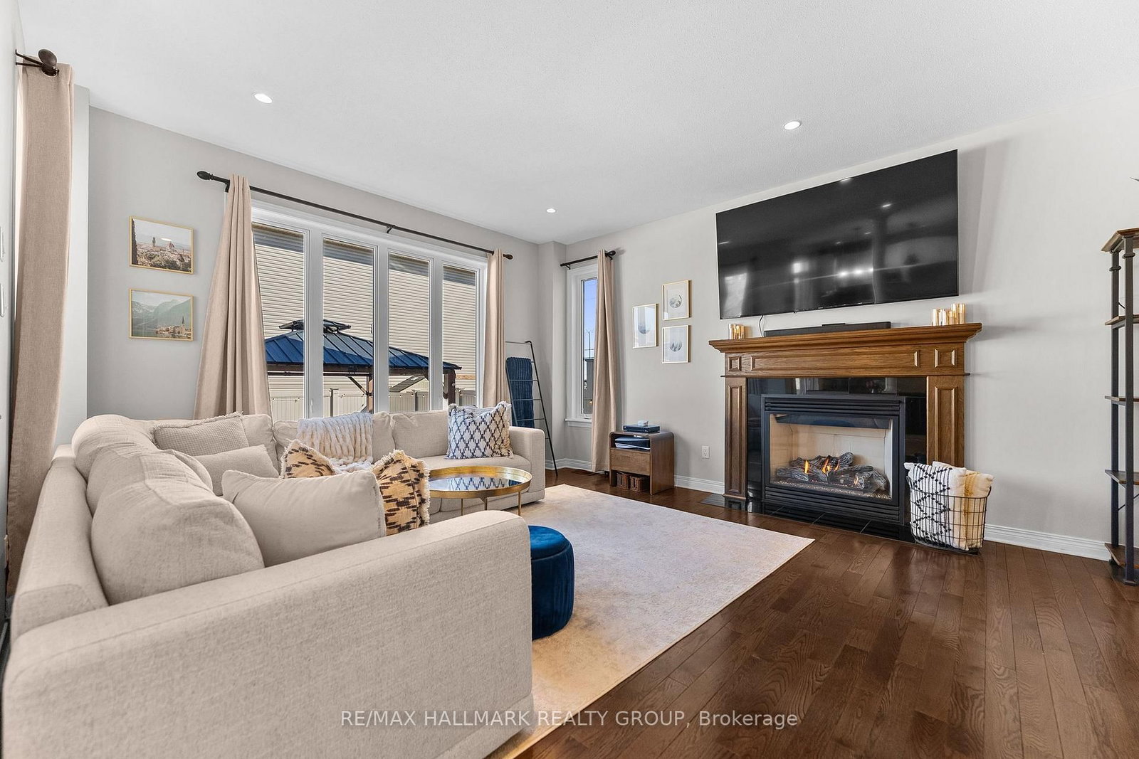 • Family Room: hardwood floor, Gas Fireplace, Large Window