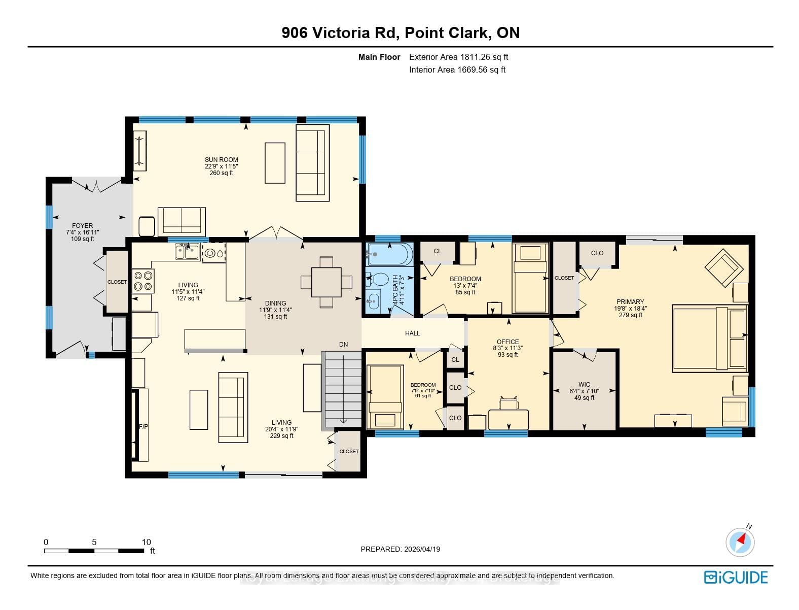 Escape to this sprawling half-acre retreat in the heart of Point Clark, located just steps from the pristine shores of Lake Huron. The Bungalow-Raised on 906 Victoria Road has 3 bedrooms, 2 bathrooms, and is located on a 172 x 126 ft lot in the community of Huron-Kinloss . This versatile property serves perfectly as a permanent family home or a year-round cottage. Peace of mind comes standard with a new septic system (2025) and a new gas forced air furnace (2025). Hobbyists will love the 26' x 22' detached, fully insulated, and heated shop/garage featuring its own dedicated gas heater. Dual street access provides unparalleled parking flexibility for boats, RVs, and trailers. Step through the welcoming foyer which offers convenient double-access to both front and rear yards and a stunning four-season sunroom. This "wow-factor" space is perfect for soaking in the privacy of your mature, treed surroundings. The heart of the home features an open-concept kitchen and living room with soaring vaulted ceilings and a cozy natural gas fireplace, while large sliding glass doors flood this space with natural light. The main level hosts a 4-piece bathroom and three bedrooms, including a primary suite with a private walk-out balcony and ample closet space. The lower level adds even more value with a walk-out to the backyard, a second gas fireplace, and another 4-piece bathroom featuring a deep soaker tub. Book a private showing today to experience all this beautiful home and property has to offer.
