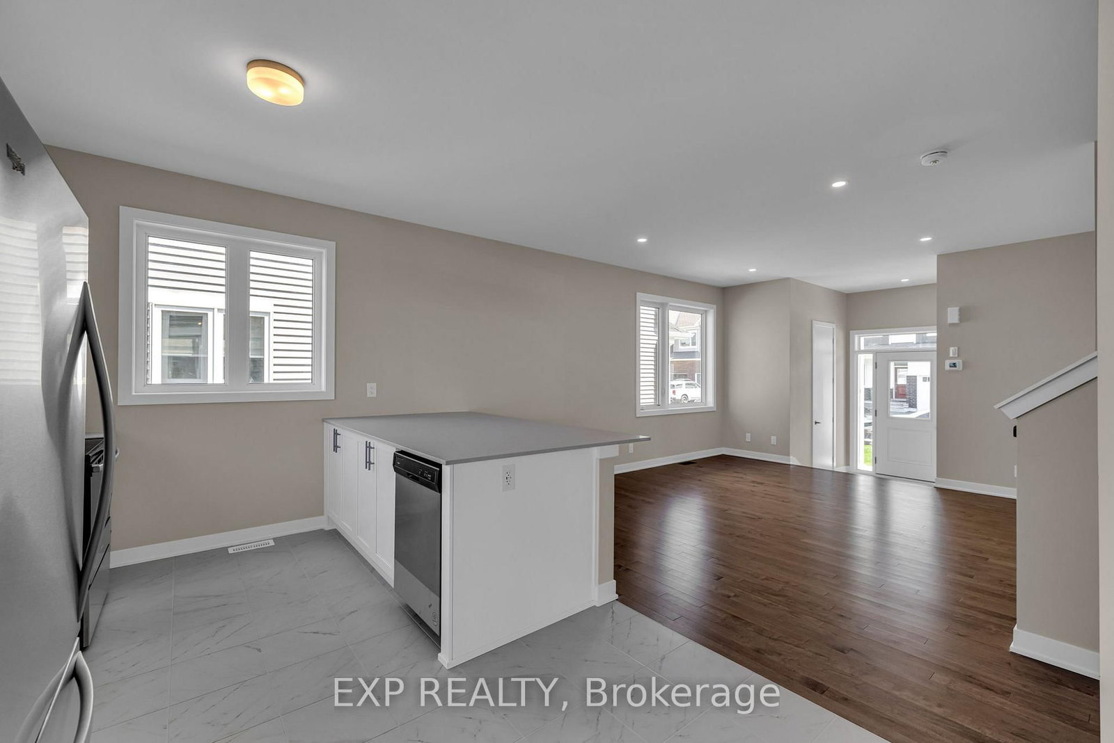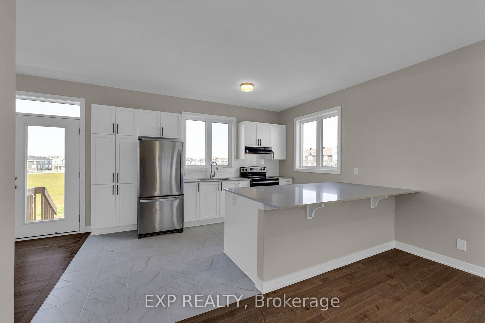 Welcome to 417 Epoch St. The 2-Storey on 417 Epoch Street has 3 bedrooms, 3 bathrooms, and is located on a 69.88 x 30.58 ft lot in the community of Barrhaven - Half Moon Bay .! This is a newer end-unit townhome in Half Moon Bay. Backing on the park and offering over 2,000 square feet of pristine living space, this home is perfect for a growing family. Enjoy hardwood flooring throughout the main level, accentuating the open-concept layout, designer kitchen and an expansive island. Entertain guests in the separate dining area or the spacious great room flooded with natural light. Upstairs, discover a lavish primary bedroom with a private ensuite, along with two additional large bedrooms and another full bathroom. The finished basement adds versatility with a full bath, recreation space, and laundry facilities. Located in a desirable neighbourhood with excellent schools, close proximity to shopping, and the Minto Recreation Complex. Submit rental application, credit score, and proof of income with offers. Deposit: $5500.00. Flooring: Hardwood, Tile, & Carpet (Wall To Wall). *Heat, Hydro, Water extra