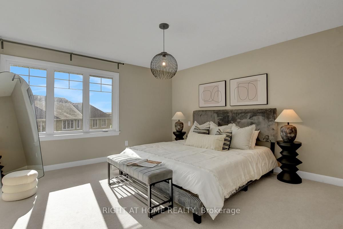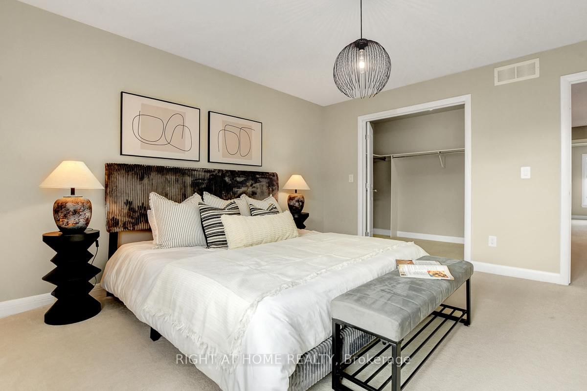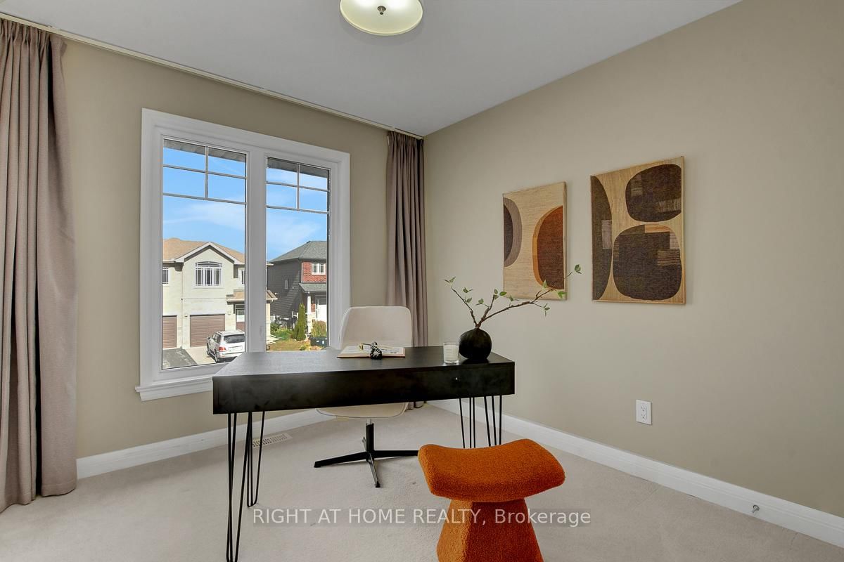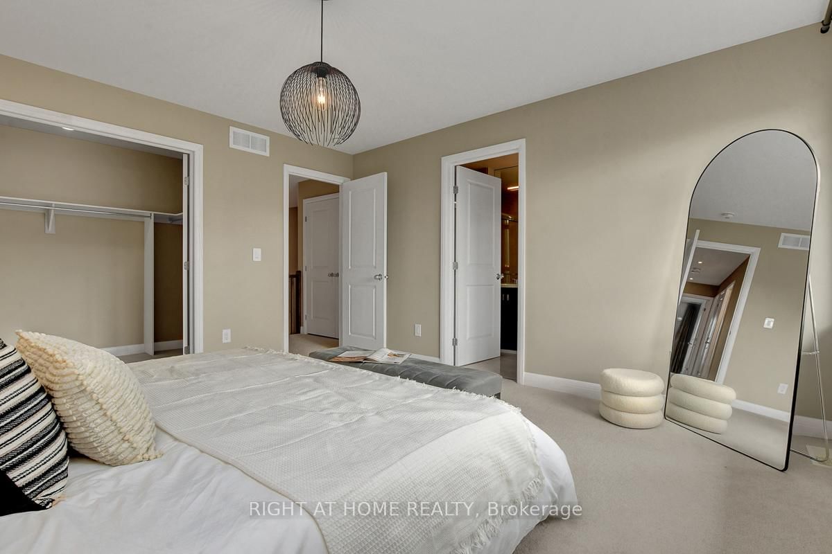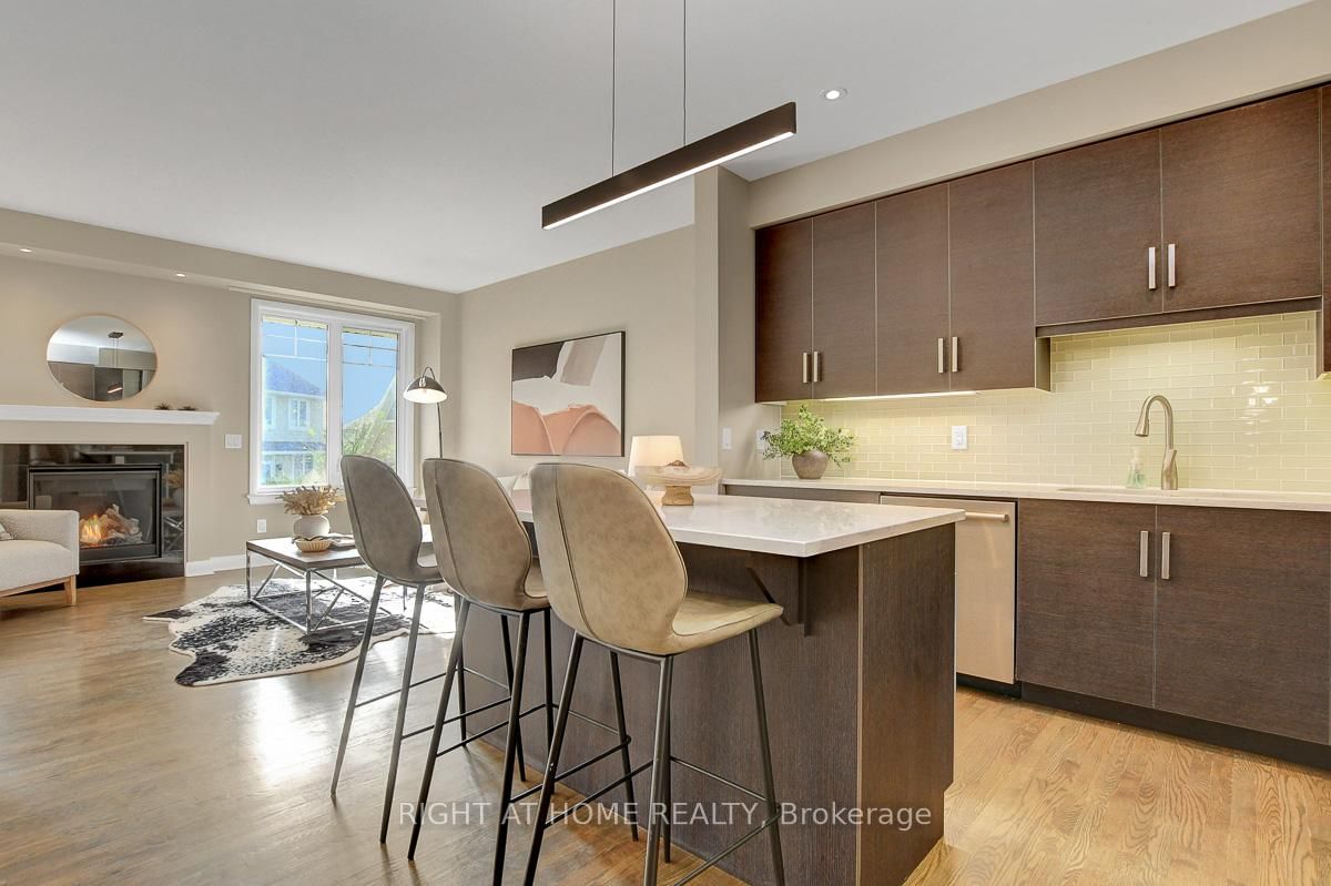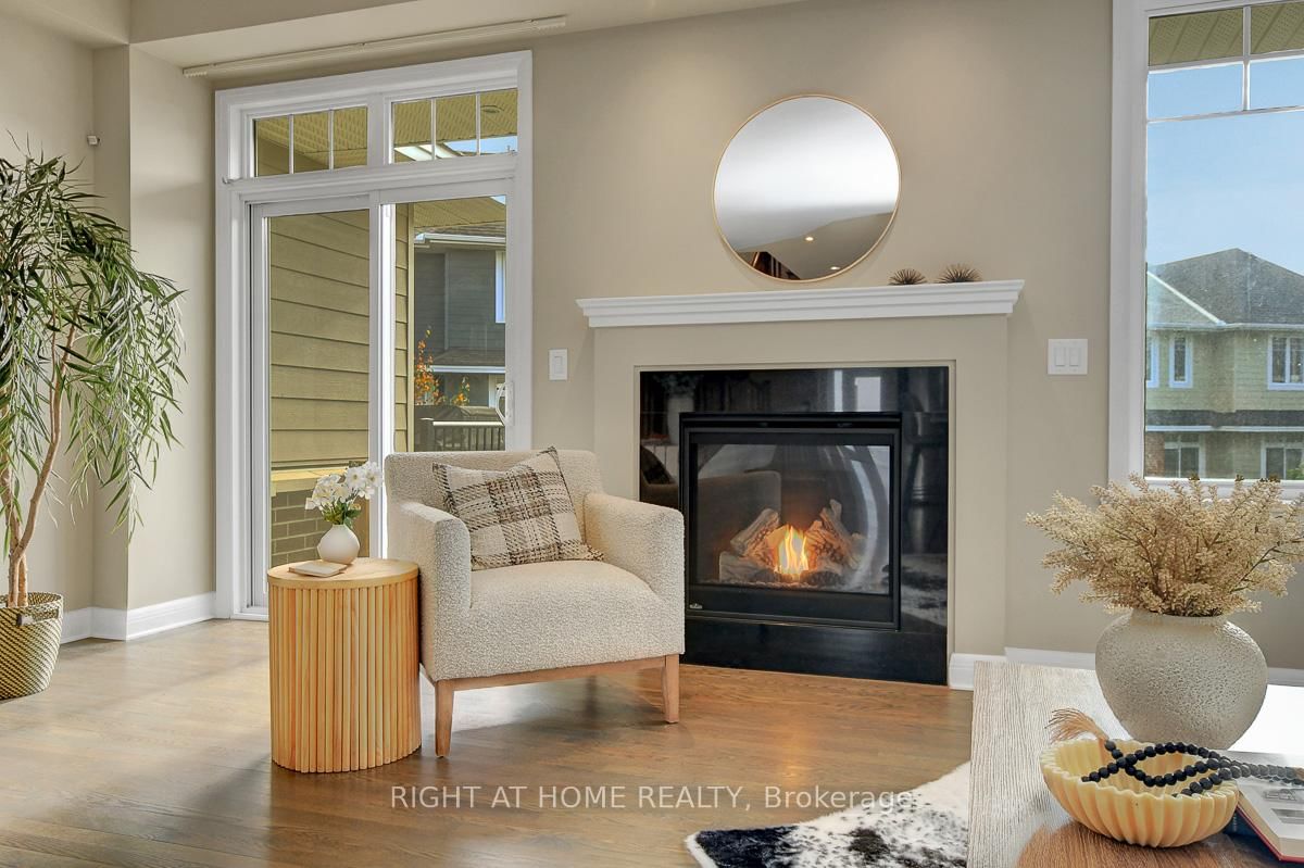 Welcome to this immaculate and upgraded Uniform built townhouse located on a quiet, family friendly street in the highly sought after Richardson Ridge community. The 2-Storey on 52 Arkose Street has 3 bedrooms, 3 bathrooms, and is located in the community of Kanata Lakes/Heritage Hills . Featuring a south facing backyard and a bright lookout basement, this home combines luxury, comfort, and convenience in one perfect package, just a 1 minute walk to the park.The main floor offers 9 ft ceilings and an open concept layout filled with natural light. The kitchen is beautifully upgraded with quartz countertops, designer backsplash, extended cabinetry and premium stainless steel appliances. The spacious great room features a cozy gas fireplace, creating a warm and inviting atmosphere for gatherings. Upstairs, a solid hardwood staircase leads to three generous bedrooms. Both bathrooms feature quartz countertops and modern finishes. The primary suite includes a large walk in closet with double doors and a luxurious ensuite with both a soaker tub and separate glass shower. A convenient second floor laundry room adds extra comfort to daily living.The lookout basement boasts a large window offering abundant natural light, with a rough in for a future bathroom and plenty of storage space. Located within top ranked school boundaries and close to Kanatas high tech sector, shopping, restaurants, public transit, highway access, parks and golf courses, this home truly has it all.