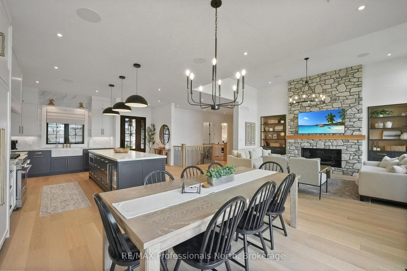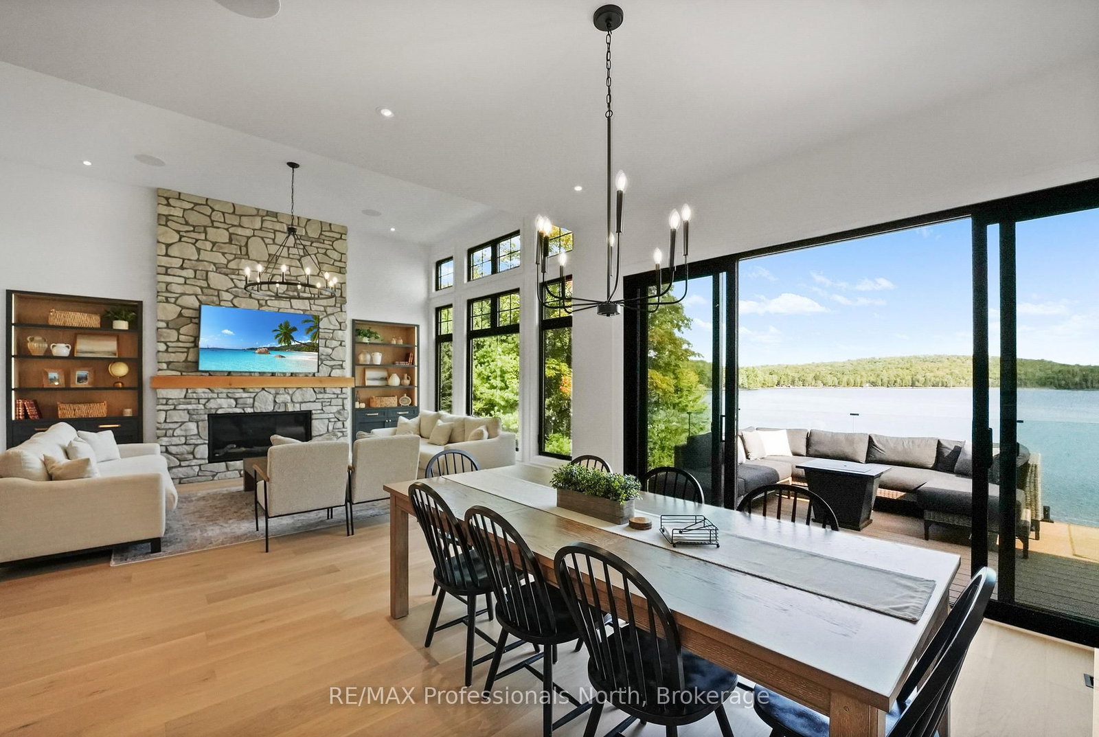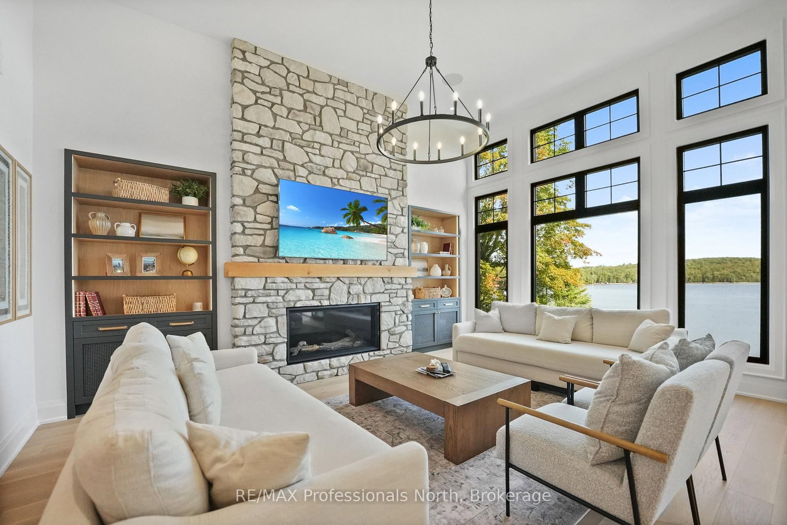 Step inside this brand-new, 4600+ sq ft lakeside retreat on beautiful Haliburton Lake. The Bungalow on 1015 Treasure Drive has 3 bedrooms, 3 bathrooms, and is located on a 263.04 x 107.28 ft loton .50-1.99 acres in the community of Harburn . This isn't just a cottage; it's a magazine-worthy masterpiece with premium finishes at every turn.The main level features a soaring cathedral great room with a propane fireplace and a composite deck with glass railing that overlooks the expansive, clear lake. Walking through the door the view will take your breath away, as will the kitchen - boasting high-end appliances and extensive custom cabinetry that extends into a practical mudroom with laundry. In addition to the open concept main areas, you'll find four spacious bedrooms and three elegant bathrooms, plus an office and a fantastic sunroom for those lazy afternoons.The walkout basement is ready for action with a home gym and a stylish bar, perfect for entertaining. The property sits on a level landscaped lot with prime shoreline, offering direct access to the clean, clear waters of one of the area's largest lakes, and it's just minutes from a convenient marina and Fort Irwin.With in-floor heating throughout the lower level and tiled areas, this home offers comfort and luxury in every season. This is the perfect blend of modern design and cottage country living.