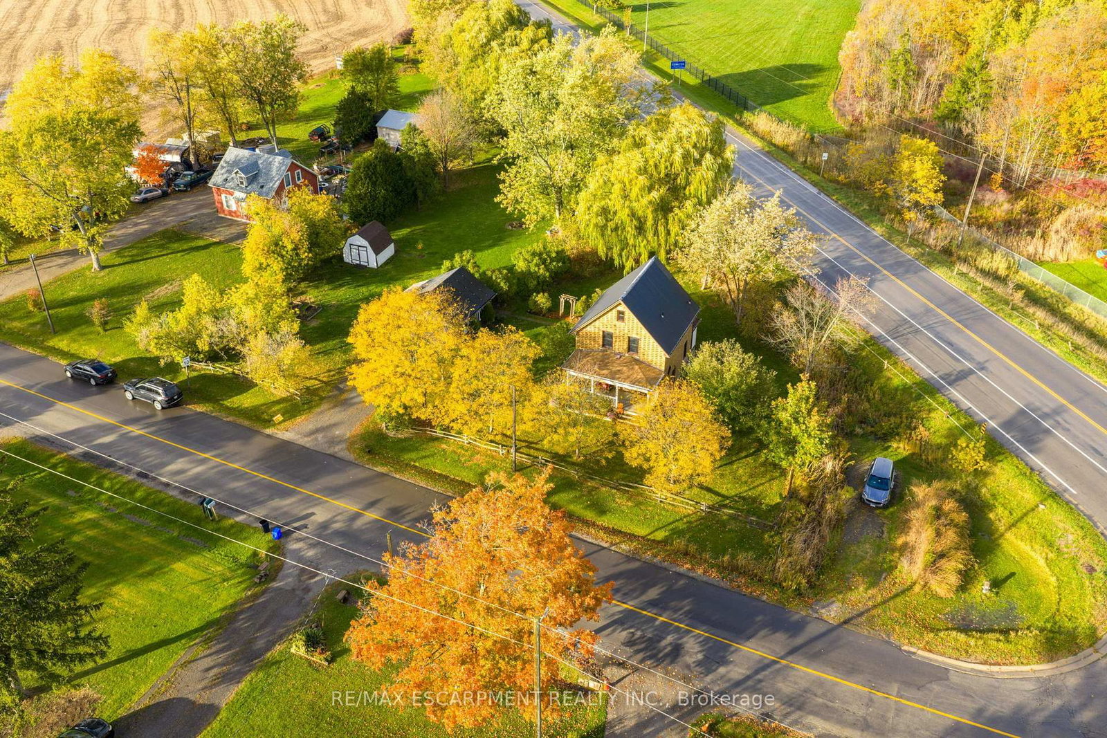 Welcome to "Le Petit Nid" (The Little Nest) - a charming 2-bed, 1-bath century home set on over of an acre of beautifully treed, park like grounds. The 2-Storey on 2090 Haldibrook Road has 2 bedrooms, 1 bathrooms, and is located on a 344.2 x 210.2 ft lot in the community of Rural Glanbrook . Step inside and you're greeted by warm original woodwork, a solid wood staircase, and rich wood floors that run throughout the main and upper levels. The bright living room offers large windows and pot lights creating a cozy space, while the adjoining dining room is ideal for family dinners and entertaining. At the heart of the home is the updated kitchen, where modern finishes blend seamlessly with the home's character. Enjoy new cabinetry, sleek countertops, classic white subway tile, stainless steel appliances, and a peninsula with bar seating. Off the back entry, a practical mud room provides the perfect drop zone for boots, coats, sports gear, and pets while keeping the rest of the home neat and organized. Upstairs, you'll find two comfortable bedrooms, both filled with natural light and plenty of storage space. The updated 3pc bathroom feels fresh and modern with a large vanity, tiled floor, and oversized glass shower. A major bonus is the detached garage/workshop, on its own 60 AMP panel, equipped with EV charging capabilities and rooftop solar panels. Whether you're a hobbyist, contractor, car enthusiast, or need a space for extra tools and toys, this space is a huge value add. Outdoors, this property truly stands out. Thoughtful landscaping, raised garden beds, and established shrubs create a welcoming feel. The pie shaped lot offers multiple zones for play, gardening, entertaining, and relaxation. This property offers peaceful rural living with easy access to Hamilton, Caledonia, and major commuter routes, as well as nearby amenities, schools, and parks. If you're looking for a move-in-ready home with true character, modern updates, incredible outdoor space, and a versatile garage/workshop, this property is a must see.