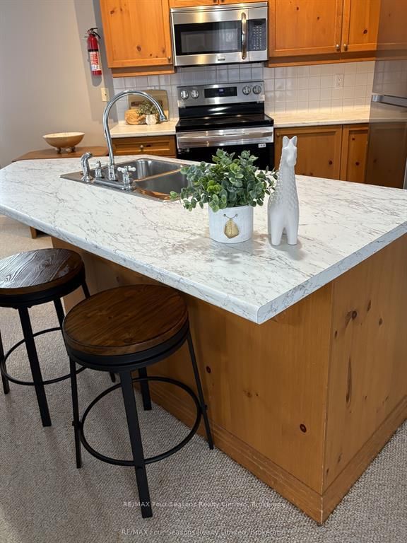 TURN KEY! Embrace the Ultimate in Mountain Living! Welcome to this meticulously cared for exceptional ground-floor 2-bedroom, 2-bathroom unit (1083 sf) in the highly desirable Snowbridge community. The 1 Storey/Apt on 114-184 Snowbridge Way has 2 bedrooms, 2 bathrooms, and is located in the community of Blue Mountains . A rare opportunity to own a prime property that combines lifestyle, location, and investment potential. Bathed in natural light, this spacious unit offers direct access to green space, perfect for families and outdoor enthusiasts. Historic Snowbridge is an ideal choice whether you're looking for a vacation getaway, income property, or both. Unbeatable Location: Just steps from the community pool, walking distance to the Village, Beach Access on Georgian Bay (drive or shuttle) and immediate access to the shuttle stop for the Blue Mountain ski hills~ no need to worry about parking. Beautifully positioned along the Monterra Golf Course (4th hole), this unit offers serene, country-like views. Snowbridge is known for its peaceful charm while being only minutes from the Village at Blue Mountain, a vibrant destination filled with shops, restaurants, and year-round entertainment. Endless Recreation at Your Doorstep: From skiing and snowboarding in winter to golfing, hiking, biking and beach days in summer, this four-season community offers endless outdoor activities. Discover Downtown Collingwood and Thornbury~ boutique shops, restaurants and cafes featuring culinary delights, art, culture and all that Southern Georgian Bay has to offer. Take a stroll along the waterfront or in the countryside. Visit a vineyard, orchard or micro-brewery and experience the sparkling waters of Georgian Bay. Community amenities include pool access and trail networks. Whether you're seeking a relaxing retreat, a smart investment, or a base for adventure, this Snowbridge property delivers on all fronts. Your mountain lifestyle begins here. Addition Details~ High Efficiency Navian On Demand Water Heater/ Domestic and Hydronic Heat (2019). Cable TV/Highspeed Internet Included in Condo Fees. A/C 2025.