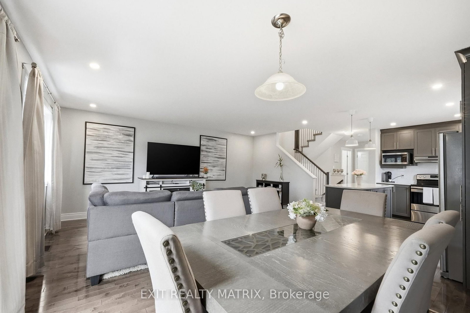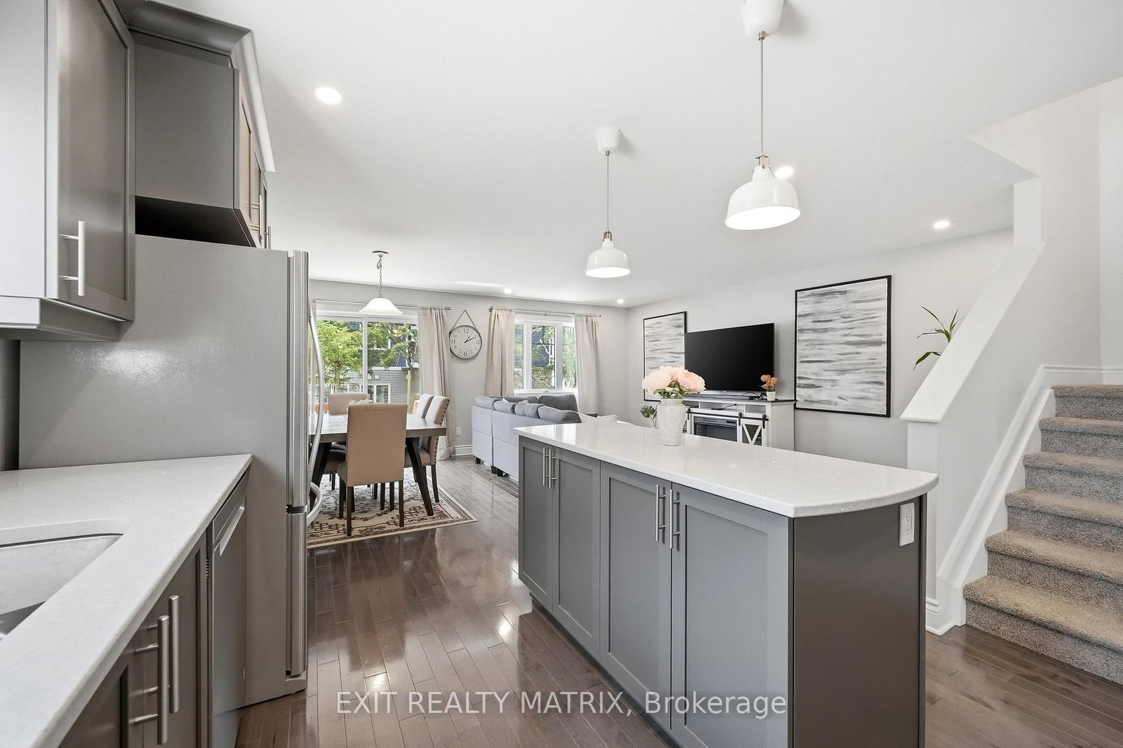 Welcome to 368 Twilight Avenue, an inviting 3-bedroom home nestled in a desirable, family-friendly neighbourhood. The 2-Storey on 368 TWILIGHT Avenue has 3 bedrooms, 3 bathrooms, and is located on a 109.93 x 21.69 ft lot in the community of Village of Russell . A welcoming front porch leads into a spacious foyer complete with a closet, convenient access to the garage, and a powder room. The kitchen is thoughtfully designed with quartz countertops, ceiling-height cabinetry, stainless steel appliances, and a large island overlooking the living and dining areas-perfect for both everyday living and entertaining. The dining room is enhanced by a stylish accent wall and features patio doors that lead directly to the backyard. The seamless flow between the kitchen, dining, and living spaces creates a bright and functional main floor. Upstairs, you'll find a primary bedroom complete with a walk-in closet and a 3-piece ensuite, along with two additional well-proportioned bedrooms. The second level features laminate flooring throughout, offering a cohesive and low-maintenance finish. The finished basement offers versatile space ideal for a home office, recreation room, gym, or play area, and includes a rough-in for a future bathroom. Outside, a mature tree line provides added privacy and a natural backdrop, especially during the lush summer months. Upgraded doors and hardware throughout. The double-wide laneway adds everyday convenience. Ideally located just steps from the 10 km paved New York Central Recreational Trail, Russell Fairgrounds, arena, schools, library, conservation area, sports dome, restaurants, cafés, and more. Exciting upcoming amenities include the new Russell Recreation Complex featuring three ice rinks and a 25-metre indoor pool, as well as the Russell Station Trail/Eadie Park with tennis and pickleball courts, splash pad, and play structure-anticipated completion Fall 2026.