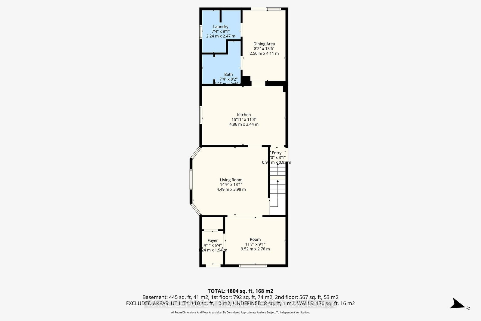 Kitchen appliances including fridge, stove, and dishwasher. Washer and dryer located in the main floor laundry room.