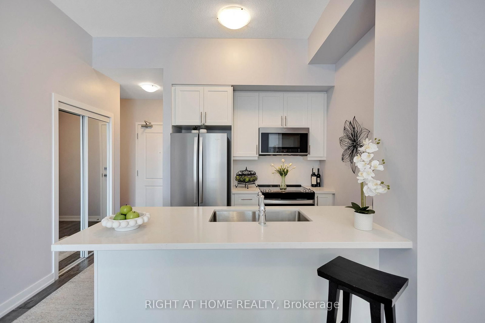 Stylishly upgraded, and move-in ready! Welcome to this exceptional 1+Den condo by New Horizon Development Group in the highly sought-after Trend 3 building. The 1 Storey/Apt on 519-470 Dundas Street E has 1 bedrooms, 1 bathrooms, and is located in the community of Waterdown . Offering 638 sq. ft. of beautifully finished living space, this suite perfectly blends modern design with everyday comfort-ideal for first-time buyers, downsizers, or savvy investors. The modern kitchen is both elegant and timeless, showcasing quartz countertops, stylish cabinetry, upgraded hardware, and a full suite of upgraded Whirlpool appliances, including a versatile range with microwave and cooktop. The open-concept living area is complemented by sleek, neutral vinyl plank flooring throughout, creating a warm and contemporary feel. The generous primary bedroom is paired with a versatile den-ideal for a home office or guest space-and a well-appointed 4-piece bath. Enjoy the comfort and efficiency of geothermal heating and cooling year-round. This unit also includes one exclusively owned locker and one underground parking space for added convenience. Residents can enjoy the fantastic amenities, including a fully equipped gym on the main level and a beautifully designed terrace on the same floor-complete with seating areas, BBQs, and scenic views. Whether you're relaxing with a book, hosting summer get-togethers, or enjoying a quiet evening meal, this space is the perfect extension of your home. Ideally located within walking distance to downtown Waterdown, offering easy access to grocery stores, restaurants, and everyday amenities, and just minutes to the GO for effortless commuting.